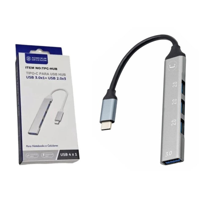 Hub Entrada Tipo C Salida 4 Puertos 1x 3.0 + 3x 2.0 Compacto