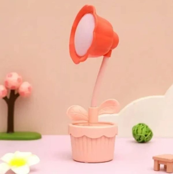 Lampara Velador Led Recargable 18x8Cm Led Superior e Inferior + Cable, Modelo Flor Naranja