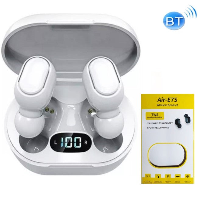 Lanzamiento Auricular Bluetooth Air-E7S 10M Con Display Manos Libres Color Blanco