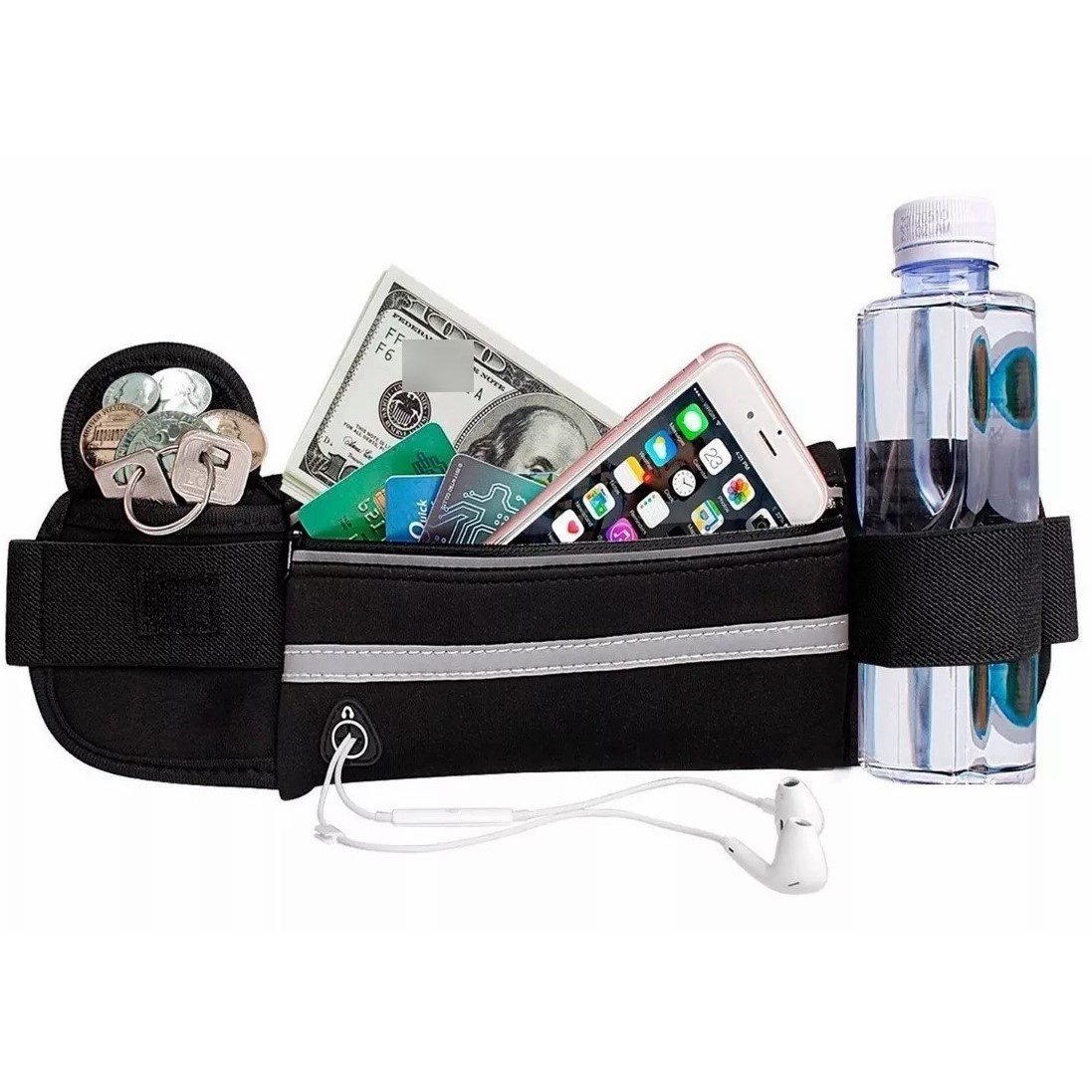 Riñonera Premium Running Deportes Con Cierre + 2 Compartimientos Color Negro